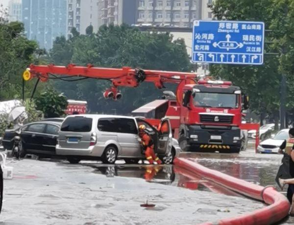 江蘇消防救援隊在中原區(qū)航海路桐柏路交叉口用遠程供水系統(tǒng)抽水。 截至7月21日19時,救援隊伍先后在20個內(nèi)澇嚴(yán)重地點開展排澇作業(yè),在阜外華中心血管醫(yī)院開展病人轉(zhuǎn)運作業(yè),共出動指戰(zhàn)員360人次,車輛85輛次,排水4.32萬噸,疏散群眾28人,轉(zhuǎn)移物資36.7噸。